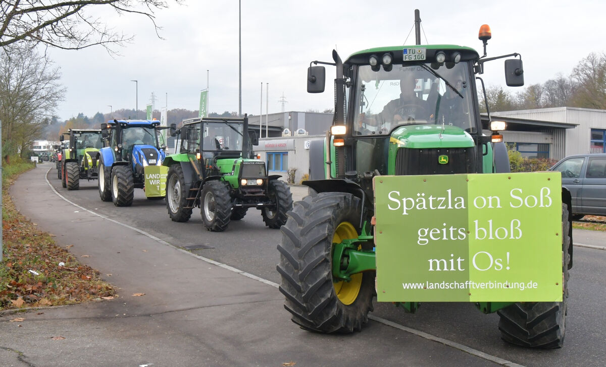 Zur Großdemonstration der bundesweiten Bewegung »Land schafft Verbindung« am morgigen Dienstag in der Hauptstadt haben sich bereits am Wochenende Gruppen aus Baden-Württemberg auf den Weg gemacht. Betzingen war am Sonntagmorgen eine Station für die Staffelfahrt-Teilnehmer aus dem Südwesten. Etwa hundert Landwirte von der Baar, der Alb und der Region Neckar-Alb, die sich über WhatsApp mobilisiert hatten, stärkten sich beim Zwischenstopp auf den Baywa-Gartencenter-Parkplatz, ehe es mit den Schleppern im Konvoi quer durch Reutlingen zur ersten Kundgebung in Uhingen weiterging. »Wir wurden kostenlos und großzügig verpflegt von Getränke Schwab aus Sondelfingen, der Metzgerei Zeeb und der Bäckerei Bayer aus Mittelstadt«, freute sich Mitorganisator Ulrich Kehrer aus Reicheneck.