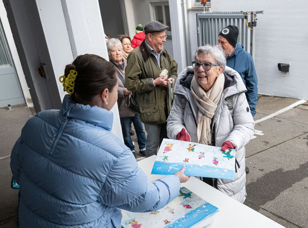 Doch da streckte sich die Reihe der diszipliniert wartenden Menge bereits bis um die Ecke der Beutterstraße - und das trotz der klirrenden Kälte. So hatten die Verkäuferinnen Birgitt Dürr vom GEA-Servicecenter sowie Katharina Wandel-Kretzschmar und Renate Ammer vom Lions-Club in der ersten halben Stunde alle Hände voll zu tun. Anschließend trudelten nach und nach weitere Kunden ein.