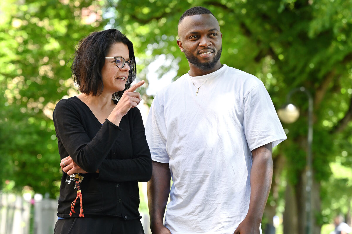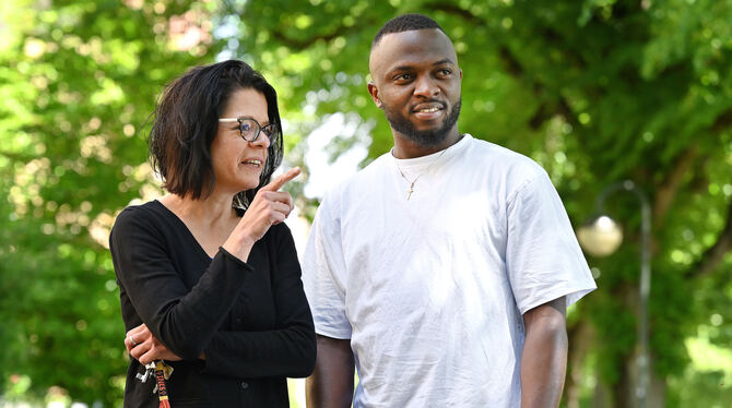 Der nigerianische Zahnmedizinstudent Joel und die Reutlinger Asylpfarrerin Ines Fischer.