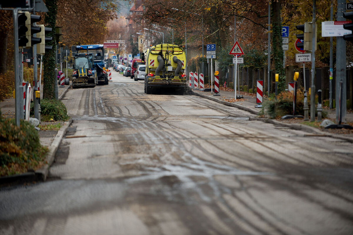 REUTLINGEN. Durch abgesenkte Bordsteine wird den Verkehrsteilnehmern, die aus den Nebenstraßen kommen, deutlich gemacht, dass jetzt die Fahrradstraße beginnt. Sowohl Radler als auch Autofahrer haben hier Vorrang. Doch derzeit kommen sie nicht weit: Der Abschnitt zwischen Charlottenstraße 58 und Urbanstraße ist gesperrt, weil dort der Belag abgefräst wird. Der Asphalt war in diesem Bereich in relativ schlechtem Zustand und hätte irgendwann auch saniert werden sollen, erklärt Gerhard Lude, stellvertretender Leiter der Abteilung Tiefbau, auf GEA-Anfrage. Die Maßnahme wird jetzt aber vorgezogen, um die Fahrradstraße perfekt zu machen, also wie in der Moltke- und Bellinostraße mit einer türkisfarbenen Linie zu versehen. Die sei zwar nicht zwingend vorgeschrieben, so Lude, diene aber der Sicherheit und dem Komfort der Radler.