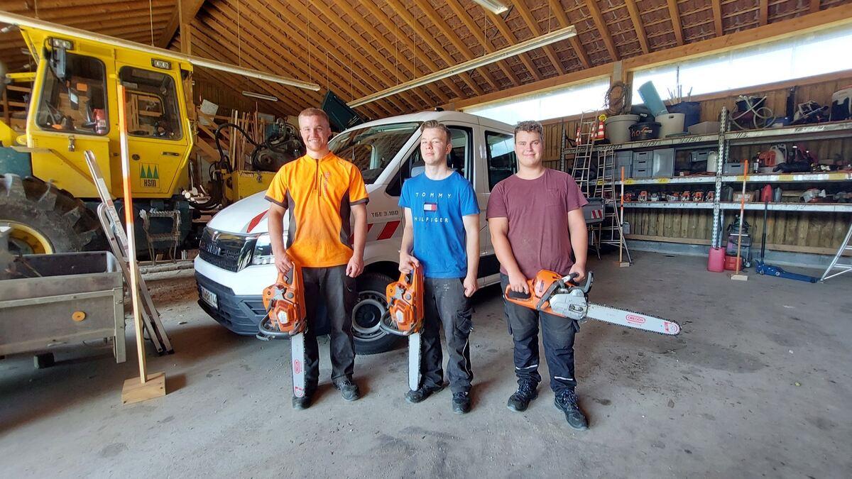 Levi Rück (von links), Tom Armbruster und Janik Vogelsang mit ihrem favorisierten Arbeitsgerät. FOTOS: GLITZ