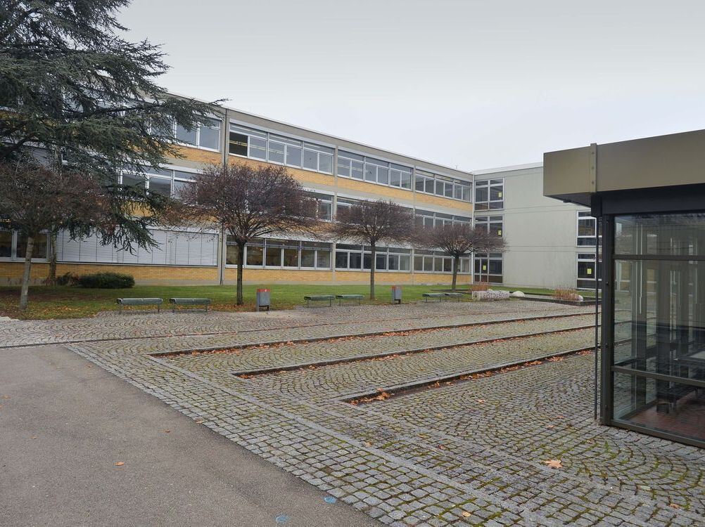 Der Hof des derzeit noch u-förmigen Trakts der Theodor-Heuss-Schule wird künftig durch einen Querbau an der offenen Seite geschlossen. Dadurch entstehen netto 20 neue Klassenzimmer und ein Atrium.