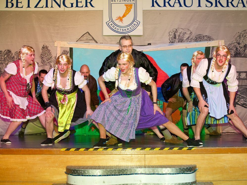 Charmant und maskulin: Kernige Dirndlträger ließen’s auf der Kemmlerhallen-Bühne zur Gaudi des Publikums ordentlich krachen.