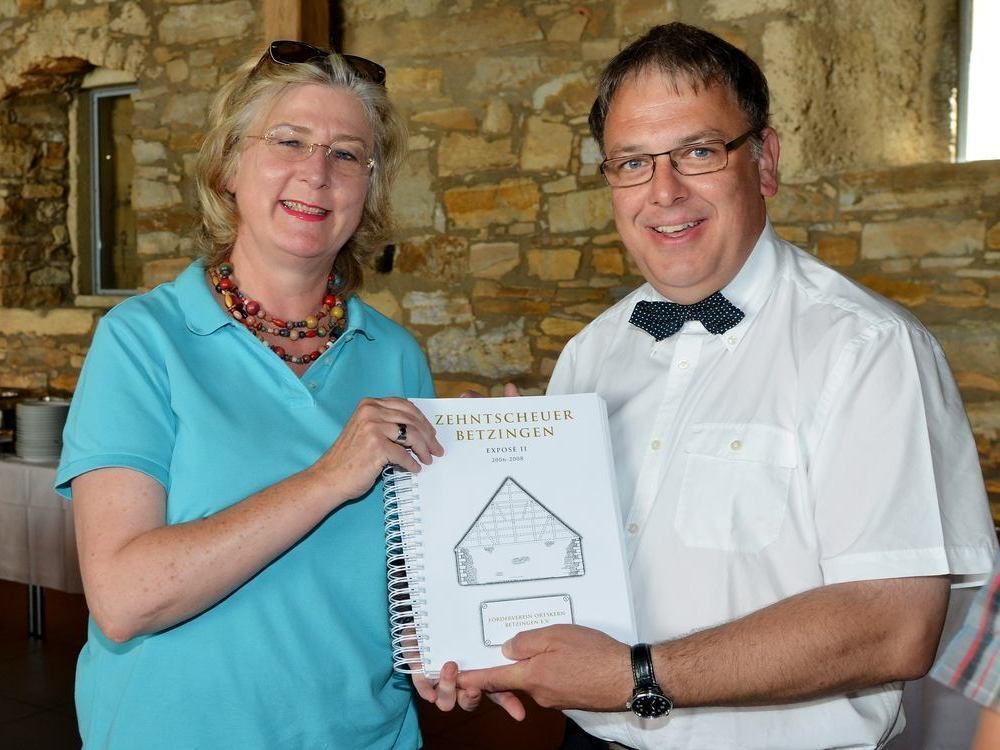 Baubürgermeisterin Ulrike Hotz und Betzingens Bezirksbürgermeister Thomas Keck feierten mit vielen Gästen das zehnjährige Bestehen des Fördervereins Ortskern Betzingen – natürlich in der Zehntscheuer.