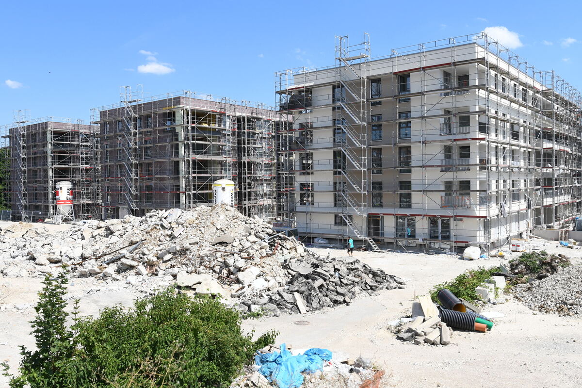 Der dritte Bauabschnitt des Blue Village, in dem jetzt Richtfest gefeiert wurde, besteht aus drei Häusern. Schon Ende September sollen die ersten Menschen hier einziehen können. FOTOS: ZENKE