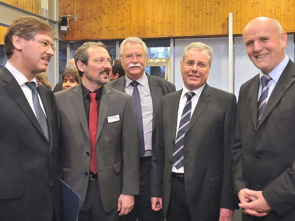 Dieter Hillebrand (von links), Gerhard Längle, Wolfgang Rieger, Rainer Single und Lothar Bauer: Fünf Männer freuten sich stellvertretend für alle, die am Gelingen des Projekts mitgewirkt haben, und verteilten in ihren Grußworten reichlich Lob.