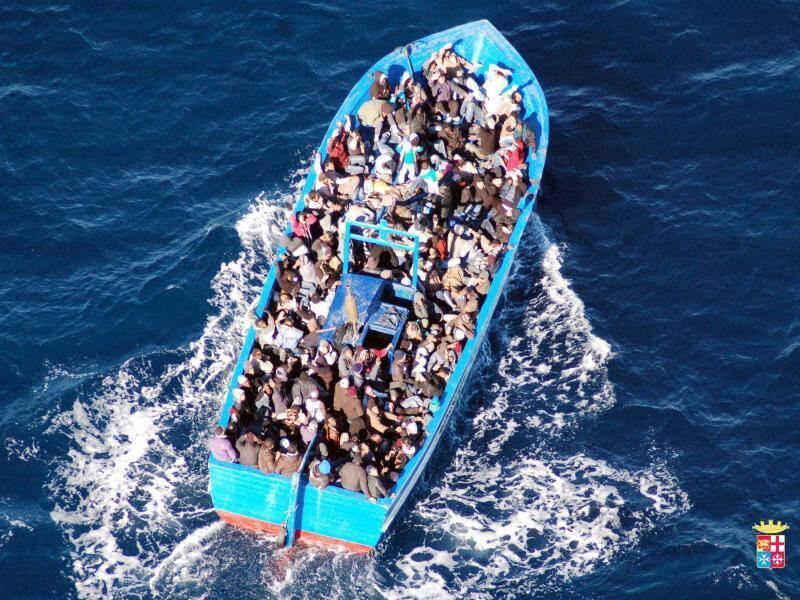 Bootsflüchtlinge vor der Küste der italienischen Mittelmeerinsel Lampedusa. Foto: Italian Navy