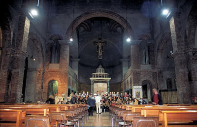 Lombardische Backstein-Romantik: Ansingen in der Kirche Santuario della Vittoria in Lecco.
