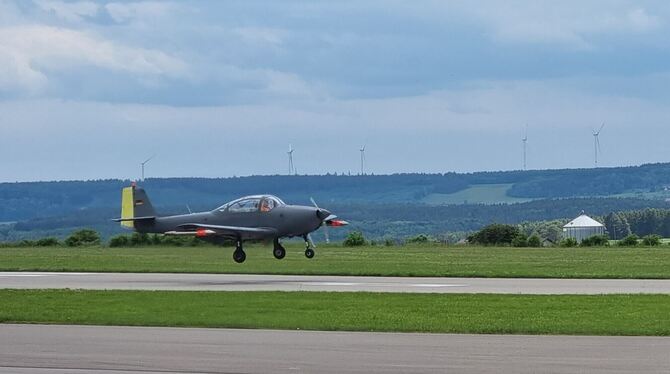 Der Hagelflieger, den der Reutlinger Verein zur Hagelabwehr angemietet hat, ist am Flughafen Stuttgart verunglückt. Hier ein Bild von einer geglückten Landung.