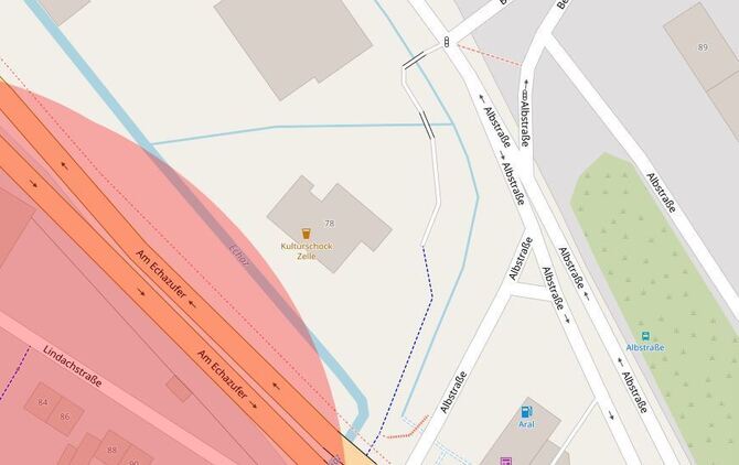 Auch rund um das Reutlinger Jugendzentrum »Kulturschock Zelle« ist Kiffen jetzt erlaubt. SCREENSHOT: bubatzkarte.de/OpenStreetMap