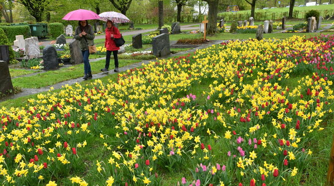 Bunte Lichtblicke im grauen Regenwetter: Die Blumen von Gönningen.