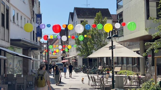 REUTLINGEN. Sie sind rund, bunt und zaubern den Passanten ein Lächeln ins Gesicht: Seit kurzem schweben über 100 Lampions über der Kanzleistraße. Ermöglicht wurden die farbenfrohen Hingucker, die sich vom Marktplatz bis zur Kreuzung Oberamteistraße ausbreiten, durch das Bundesförderprogramm »Zukunftsfähige Innenstädte und Zentren« (ZiZ), StaRT, RT-Aktiv - und nicht zuletzt auch durch jede Menge ehrenamtliches Engagement.