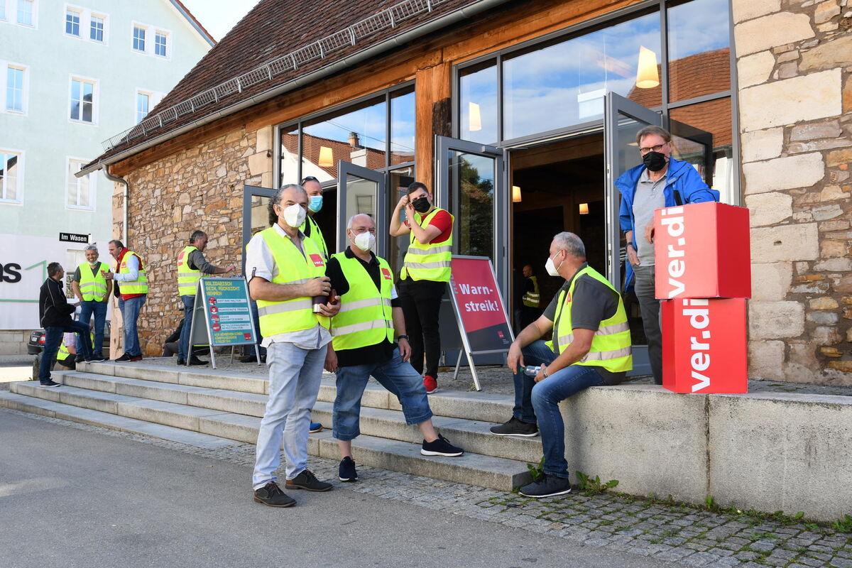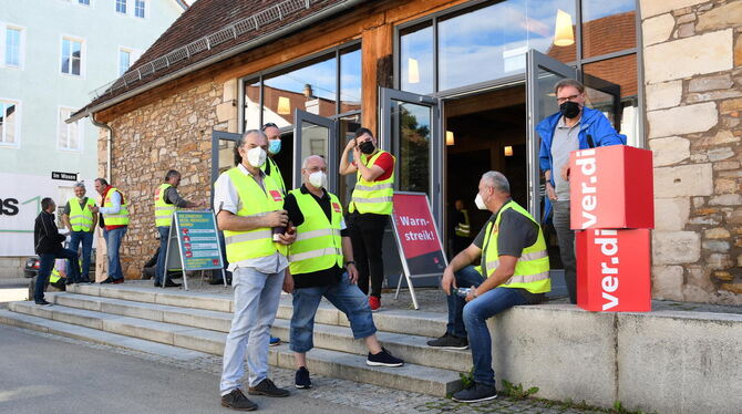 REUTLINGEN/TÜBINGEN. In der Auseinandersetzung zwischen der Gewerkschaft Verdi und dem Verband Baden-Württembergischer Omnibusunternehmer (WBO) sind am Dienstagmorgen auch Busfahrer in Reutlingen und Tübingen in einen Warnstreik getreten. »Rund 200 Fahrer werden im Streik sein«, erklärt Benjamin Stein als Bezirksgeschäftsführer von Verdi im Bezirk Neckar-Fils am Dienstagmorgen vor dem Streiklokal. Die Busfahrer haben sich in Reutlingen in der Betzinger Zehntscheuer versammelt, um über weitere Arbeitskampfmaßnahmen abzustimmen. Das Ergebnis der Urabstimmung soll am Freitag vorliegen.