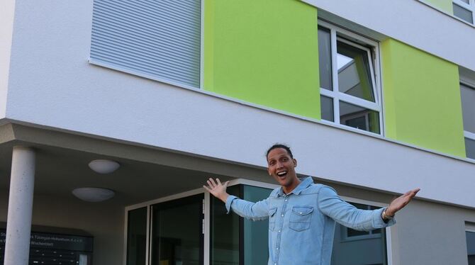 Das erste von zwei Gebäuden ist mit Semesterbeginn bezogen: Steffen Solomon hat hier ein Apartment gefunden und nennt das Wohnheimleben einfach perfekt. FOTO: SCHREINERT