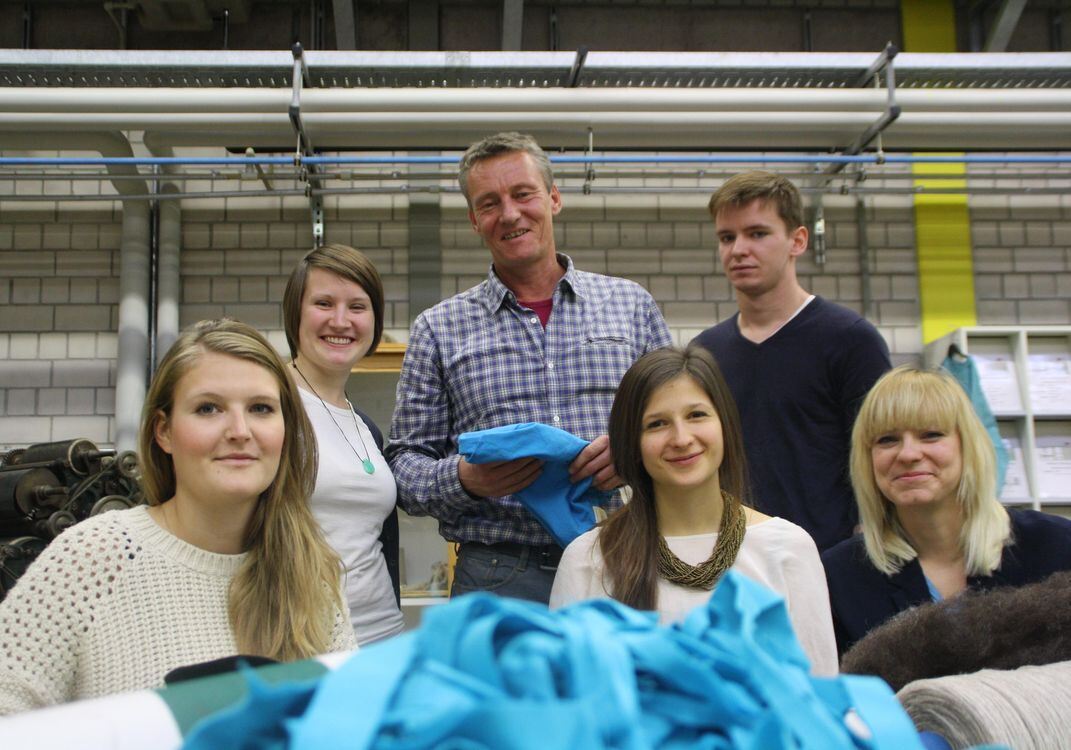 Tüfteln an »Slow Fashion« (von links): Jana Haaf, Aline Berger, Dipl.-Ing Kai Nebel, Franziska Prändl, Jakob Brandt und Saskia Kopfnagel. FOTO: KARGE