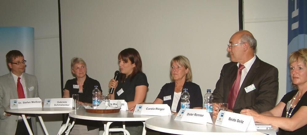 Diskutierten in der IHK-Akademie über die neue Werkrealschule von links: Dr. Stefan Meißner (RP Tübingen), Gabriele Schmalacker (Reiff-Gruppe), Nicole Marchetti (Schloss-Schule Pfullingen), Carola Rieger (Gerhart-Hauptmann-Schule Reutlingen), Dieter Renner (RP Tübingen) und die stellvertretende Vorsitzende des Gesamtelternbeirats Reutlinger Schulen, Beate Seitz.