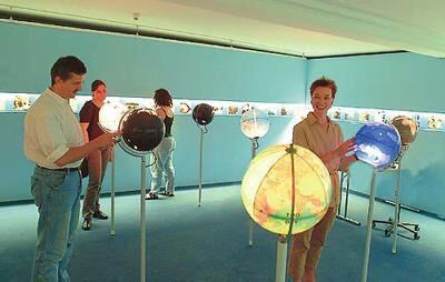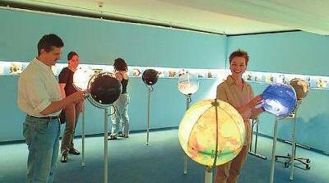 Das Thema Wasser steht auch bei der Installation von Ingo Günther im Mittelpunkt (von links): Dr. Günter Wahlefeld vom Naturkundemuseum, Andrea Bonkowski vom EPIZ, Giulia Santomauro und Dr. Barbara Karwatzki vom Naturkundemuseum.