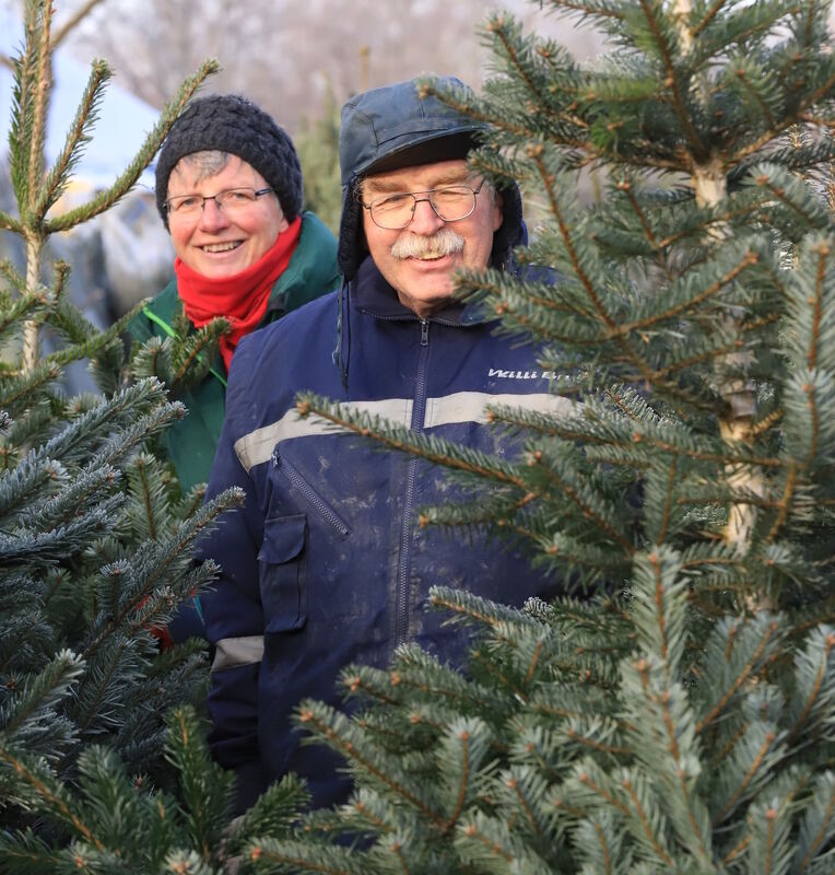 Die beiden Beschicker Hella Fischer und Roland Stockinger sind mit dem Christbaummarkt an der Kreuzeiche regelrecht verwurzelt. Seit Jahrzehnten bieten sie hier Festtagsgrün aus eigenem Anbau an. FOTO: REISNER