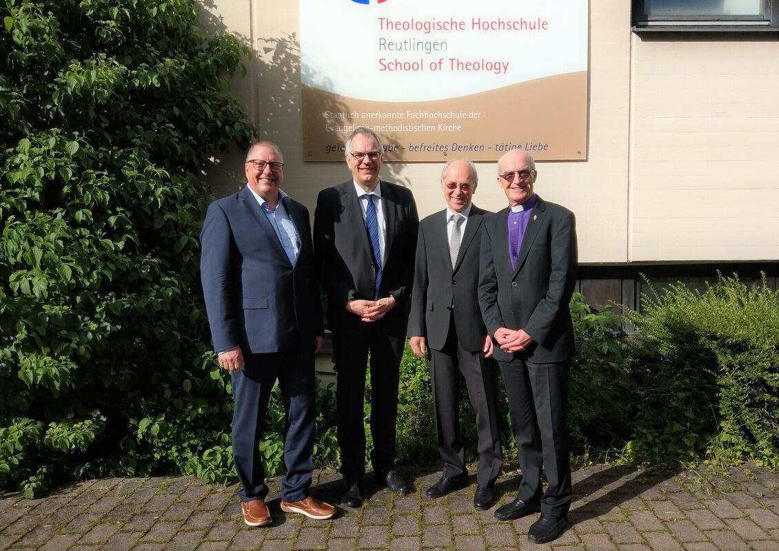 Feierten den Stabwechsel an der Theologischen Hochschule (von links): Pfarrer Markus Bach, Christof Voigt, Roland Gebauer, Bischof Patrick Streiff.