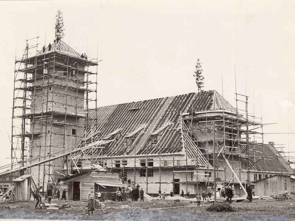 Die Christuskirche im Gerüst am 29. November 1935 - kurz darauf wurde Richtfest gefeiert. GEA-ARCHIVFOTOS