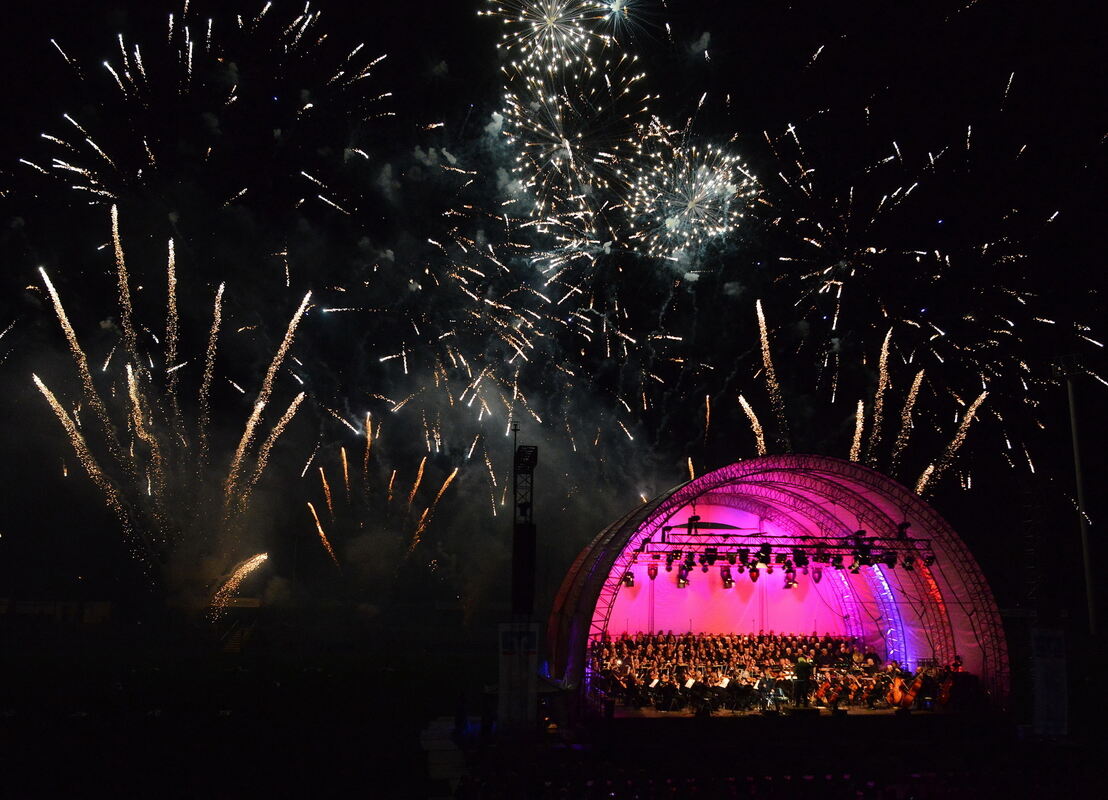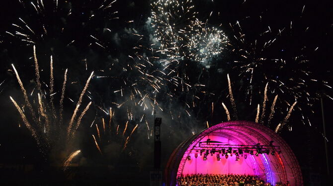 REUTLINGEN. Die größte Frage am Samstagabend im Kreuzeiche-Stadion war nicht die, ob die Musiker ihre Stücke perfekt beherrschten. Oder ob die Technik reibungslos funktioniert, das Feuerwerk genau im richtigen Sekundenbruchteil starten würde. Das alles klappte perfekt, die wichtigste Frage aber lautete: Hält das Wetter? Heftige Regenschauer, Gewitter gar waren angesagt.