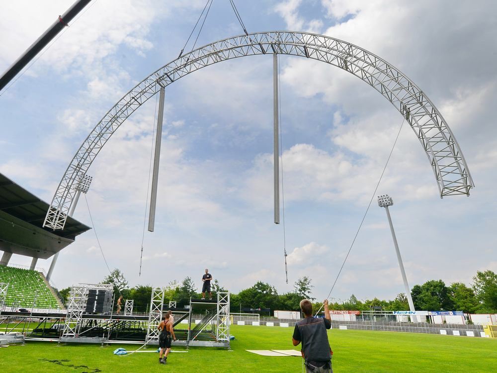Der Aufbau für die Classic Night läuft. Gestern wurde im Kreuzeichestadion die große Rundbogenbühne montiert.
