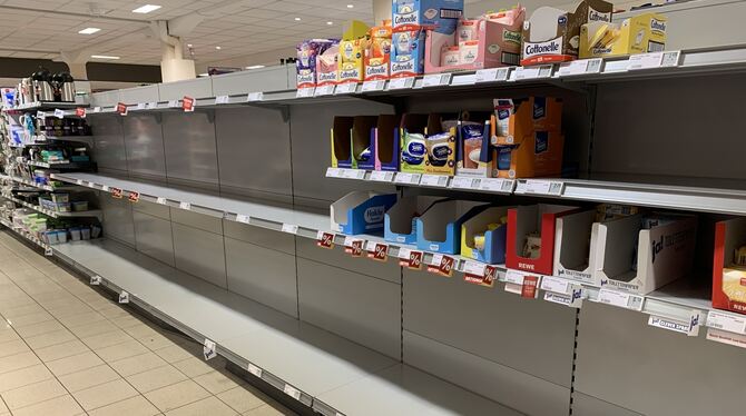 Kein Klopapier im Rewe in der Reutlinger Ringelbachstraße.