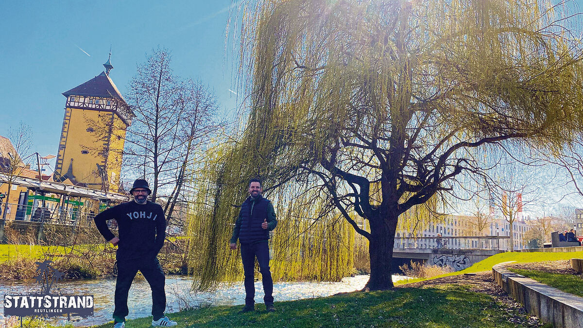 An der Echaz, mitten in Reutlingen, wollen Uwe Grauer (links) und Sebastian Keinath einen Beachclub eröffnen.