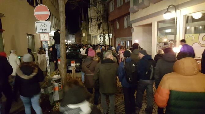 Der Zug der Demonstranten marschierte durch Wilhelmstraße und Gerberviertel: friedlich, aber dicht gedrängt und ohne Masken. Viel trugen Laternen und Kerzen. Immer wieder erschollen Rufe wie »Friede, Freiheit, keine Diktatur« oder »Hände weg von unseren Kindern«.