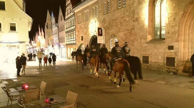 In der Gartenstraße etwa kam es laut Polizei zu einer Ansammlung von 70 bis 80 Menschen, für die ein Platzverweis ausgesprochen wurde. Die Polizei war mit mehreren Kastenwagen vor Ort. Eine Reiterstaffel unterstützte die Kräfte vom Polizeipräsidium Reutlingen.