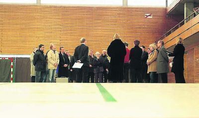 Wogen im Boden der Carl-Diem-Halle: Der Bauausschuss ließ sich vor Ort über den Zustand des Baus informieren.
