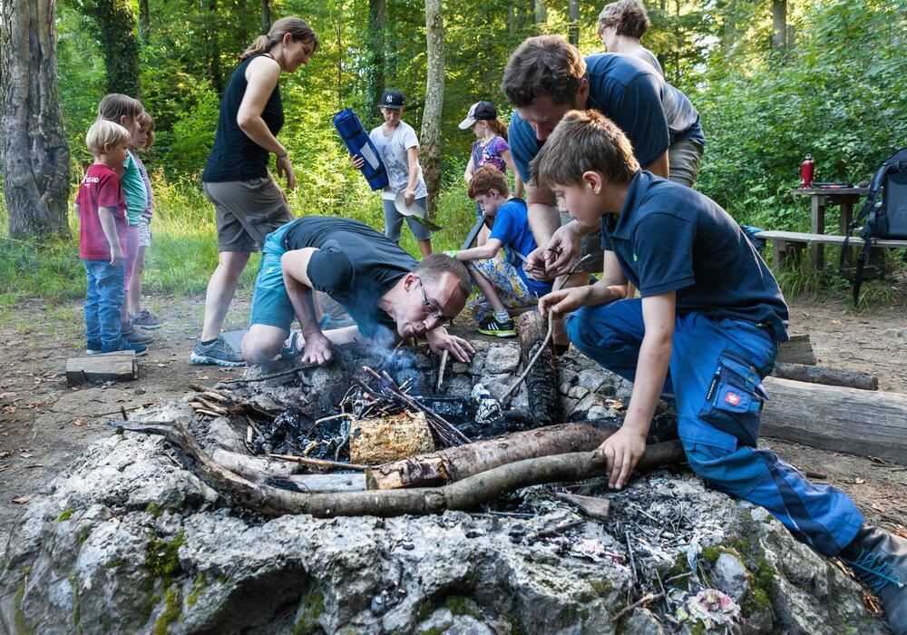 Trockene Zweige, Papier, Holz bei der Hand und dann viel Puste: Feuermachen ist das Wichtigste.