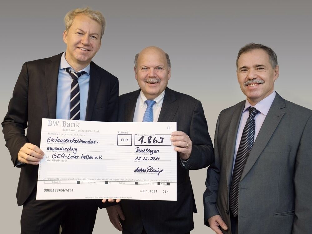 Aus der Region für die Region: Vom GEA-Motto ließen sich auch Herbert Raach (links) und Bernhard Walker (rechts) von der IKK classic leiten, als sie sich entschieden, den Verein »GEA-Leser helfen« zu unterstützen. Das freut Valdo Lehari jr., den Verleger.