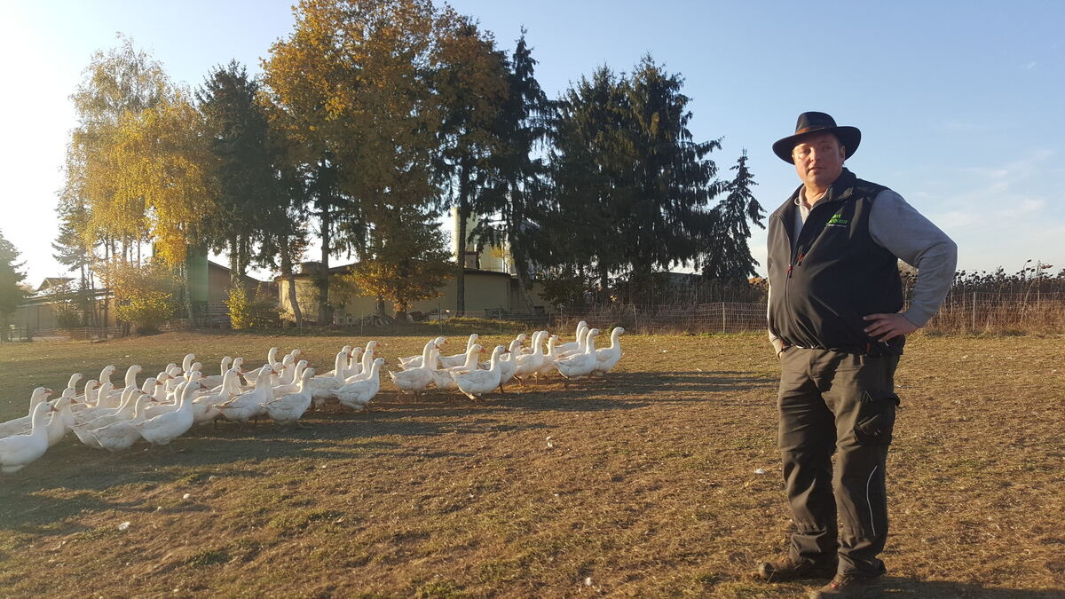 Markus Kern und seine Gänse auf dem Drei Birkenhof: »Manchmal treiben sie mich zum Wahnsinn«, sagt der Bauer. FOTO: KÜSTER