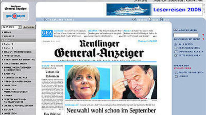 Lesen Sie den Reutlinger General-Anzeiger jederzeit und überall. Alles, was Sie dazu brauchen, ist ein Abonnement unserer digitalen Ausgabe epaper. Klicken Sie doch gleich mal rein: http://www.gea.de/epaper