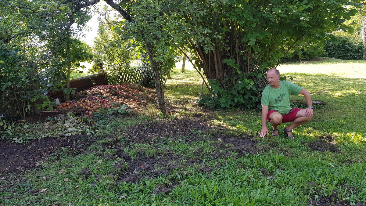 Michael Denzel beäugt den Schaden, den die Wildschweine in seinem Gütle angerichtet haben. FOTO: KÜSTER