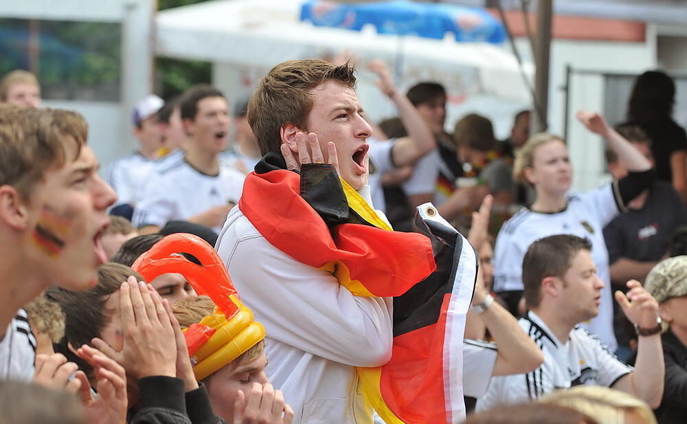 Blankes Entsetzen: Podolskis vergeigter Elf-Meter ließ im »Stellwerk« die Fußball-Seele kochen.