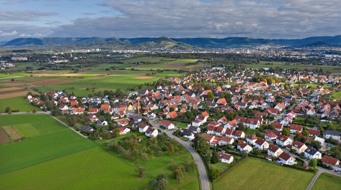 Degerschlacht ist ein Ort, der von vielen Grün- und Ackerflächen eingeschlossen ist, wie das Luftbild vom Oktober 2019 zeigt.