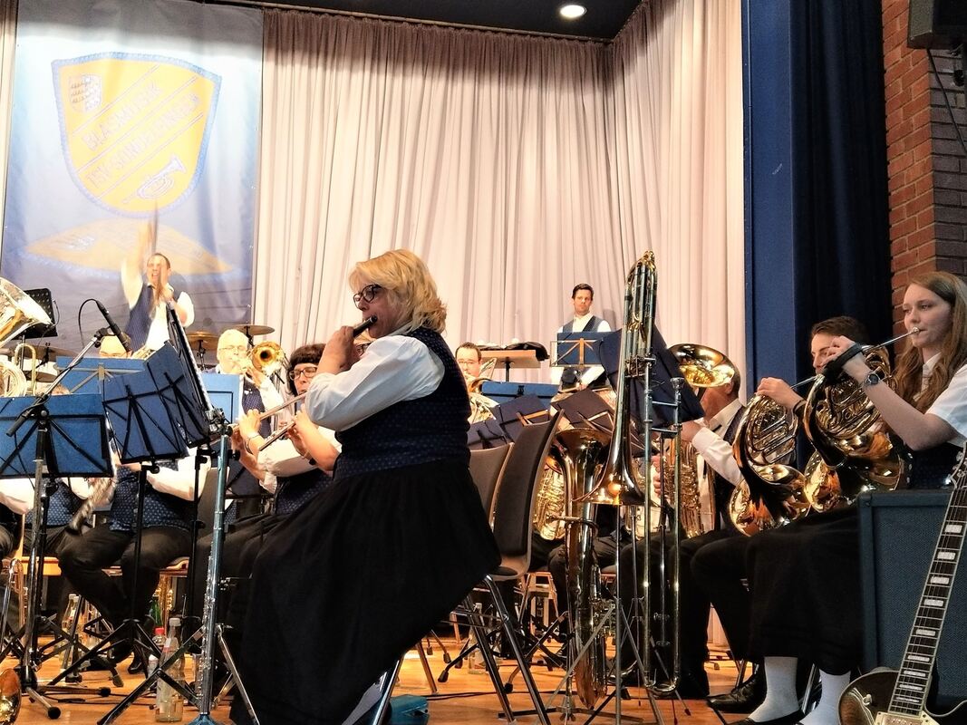 Die Blasmusik des TSV Sondelfingen führte das Publikum durch die ganze Bandbreite der Blasmusik. Eines der Glanzstücke des Abends war »Barcelona«, gesungen von Katharina Praher und Julian Hölz (Bild rechts). FOTOS: BÖHM