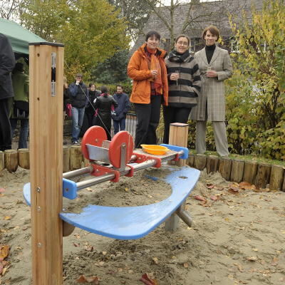 Die Initiatorinnen des Erfolgsmodels: Friederike Hahn (von links), Viktoria Peréz-Solorzano und Nicoline Mertz freuen sich über den neuen kleinstkindgerechten Garten.