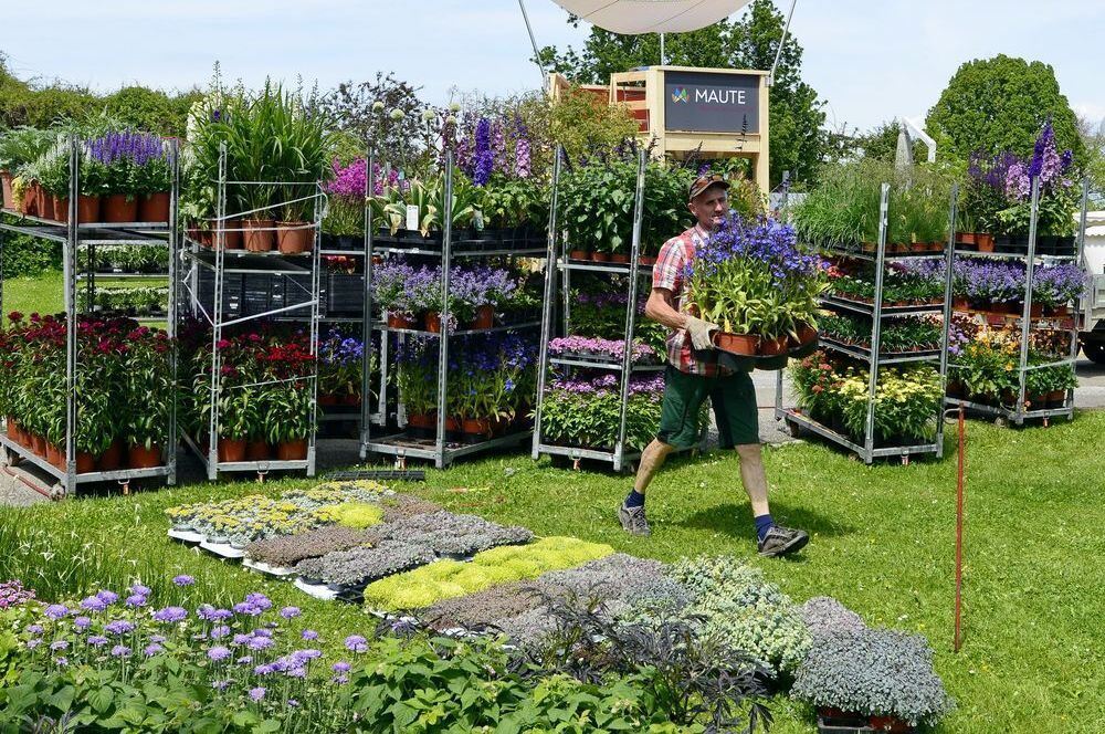 Auf der Pomologie laufen die Vorbereitungen für die Garden Life 2017 auf Hochtouren. Auch Jürgen Gräßle aus Neuhausen auf den Fildern hatte alle Hände voll zu tun, die Pflanzen an seinem Stand gefällig zu arrangieren.