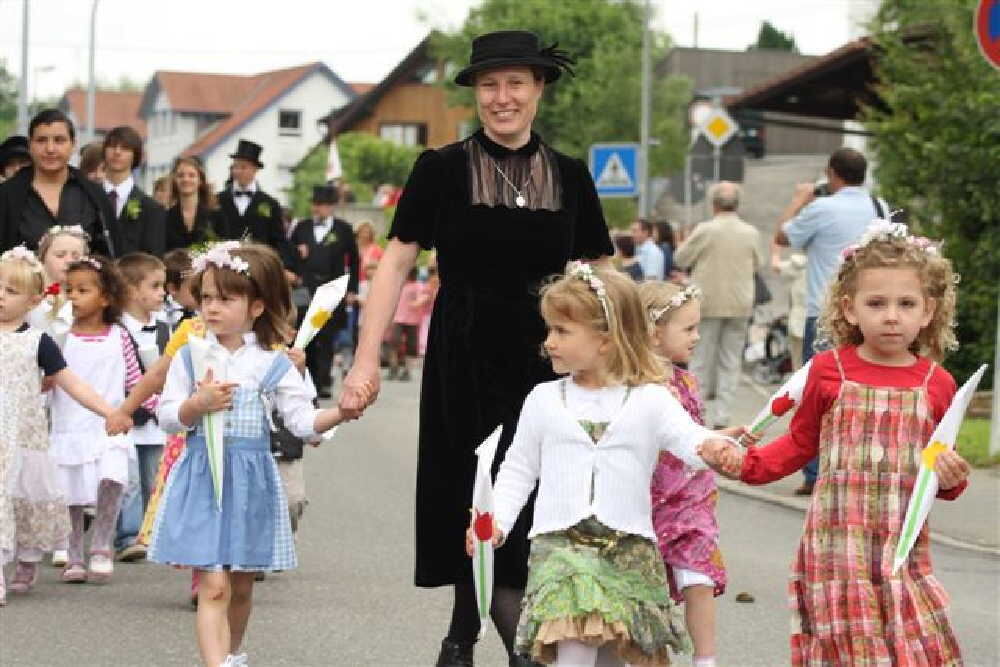 REUTLINGEN-ALTENBURG. Die Glocke schellte, der Büttel rief: »Dändt Kuahdreck weg. Feagat eure Kandl. D'r Fäschtzug kommt da Flecka ra.« Rund 400 Kinder und Erwachsene hatten sich für den großen Jubiläums-Umzug zum 100-jährigen Bestehen des TSV Altenburg am Sonntag in Schale geworfen.
