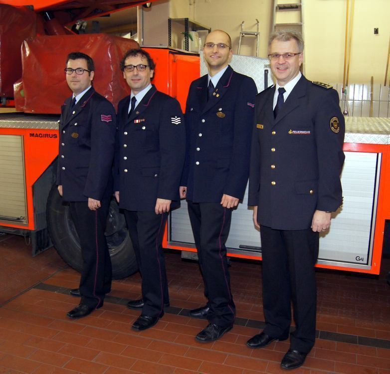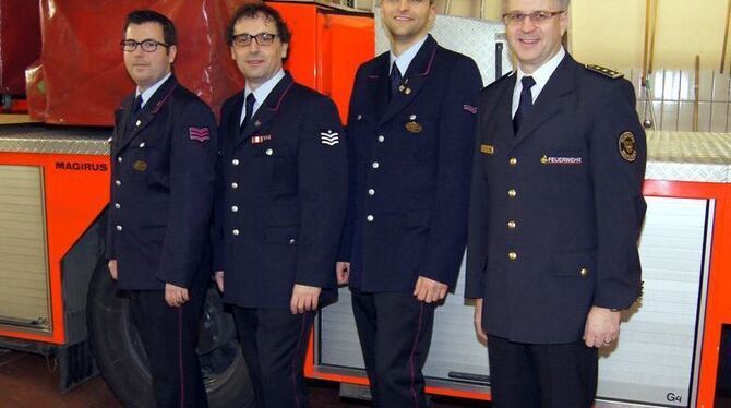 Neue und alte Führung samt Kommandant (von links): Thomas Hirrlinger, Harry Czebeka, Joachim Blasy und Harald Herrmann. FOTO: PR
