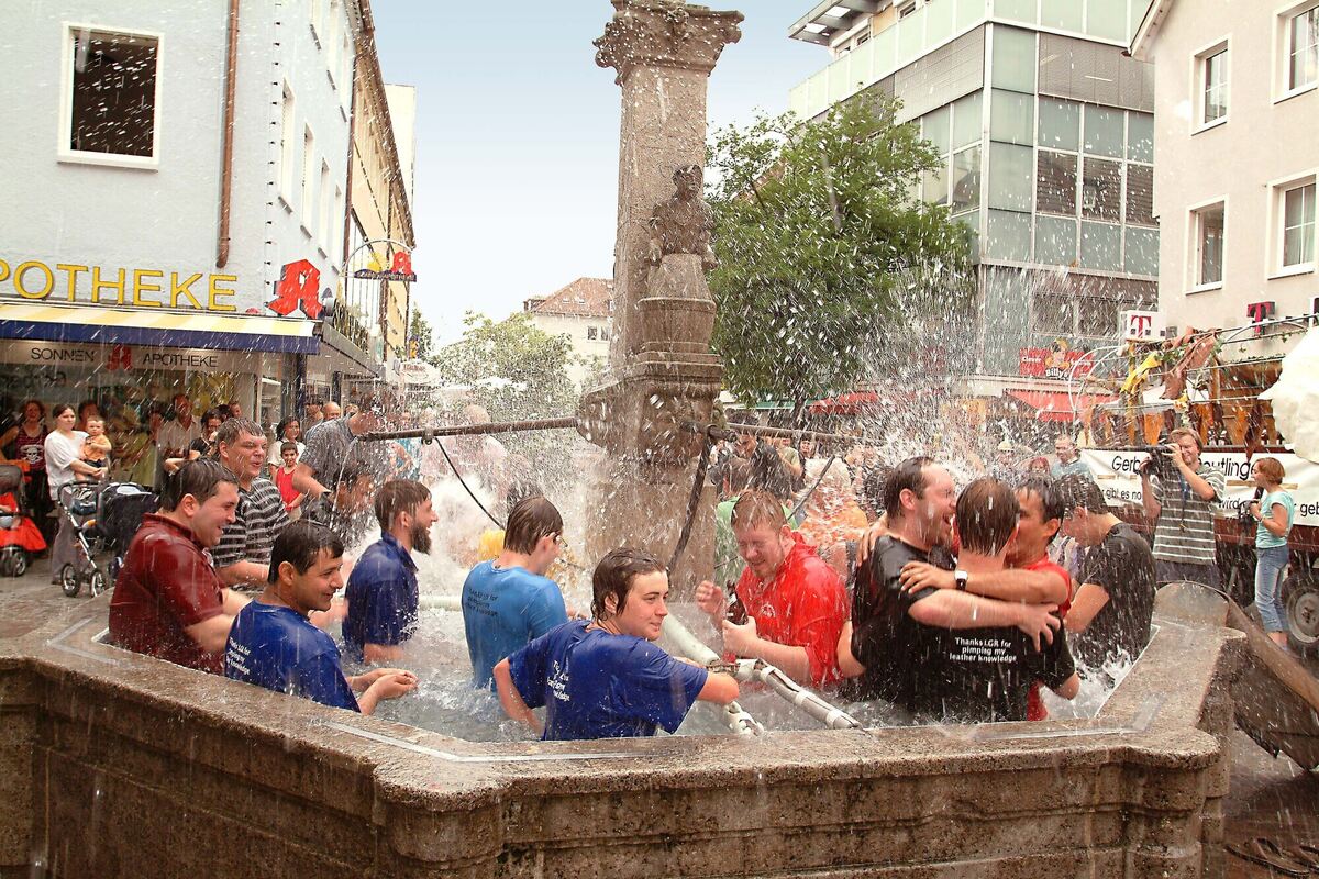 In ihrem bei Oertel+Spörer 2004 erschienenen Buch über die Reutlinger Brunnen berichtet Andrea Anstätt, dass die Köpfe der beiden Handwerker Ende der Siebzigerjahre des vorigen Jahrhunderts »eines Morgens im Brunnentrog« lagen – das Werk von Vandalen. Anlass genug für die Reutlinger, nicht nur die Skulpturen zu reparieren, sondern den ganzen Brunnen auf Vordermann zu bringen – das Becken wurde abgedichtet, kaputte Umrandungen ersetzt. Fast sieben Jahrzehnte lang wurden im Gerberbrunnen die Absolventen der mittlerweile geschlossenen und abgerissenen Reutlinger Gerberschule »getauft«. Neun Ledertechniker und drei Prozessmanager waren im Juli 2011 die Letzten, die von ihren Täufern »mit Schmackes ins kühle Nass« (GEA) geworfen wurden. (rh)
