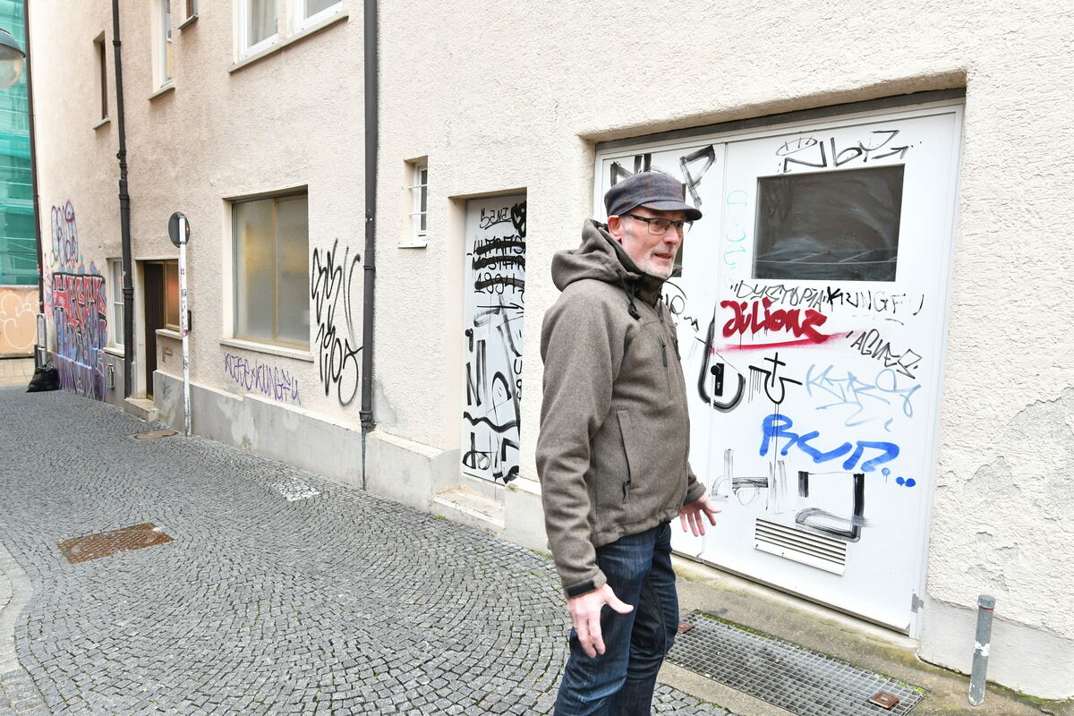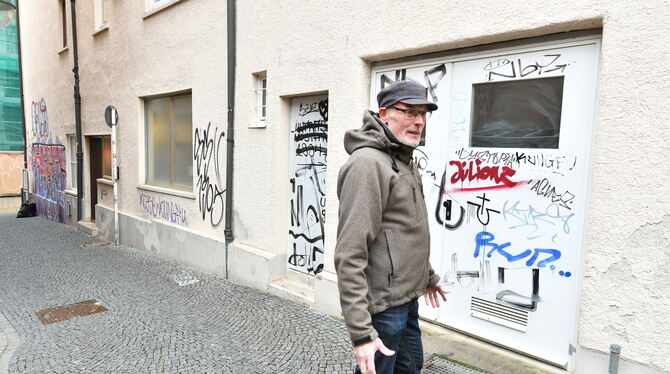 Er schaut etwas ratlos, ob der vielen – mal wilden, mal ganz hübschen – Graffiti an den Hauswänden der Innenstadt: Reutlingens Ordnungsamtschef Albert Keppler.