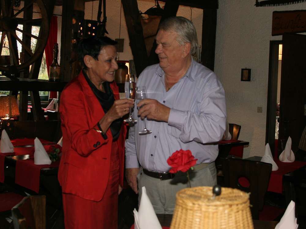 Ein Gläschen Schampus auf ein langes Berufsleben: Franziska und Klaus Lindner ziehen zur Tochter nach Mannheim.