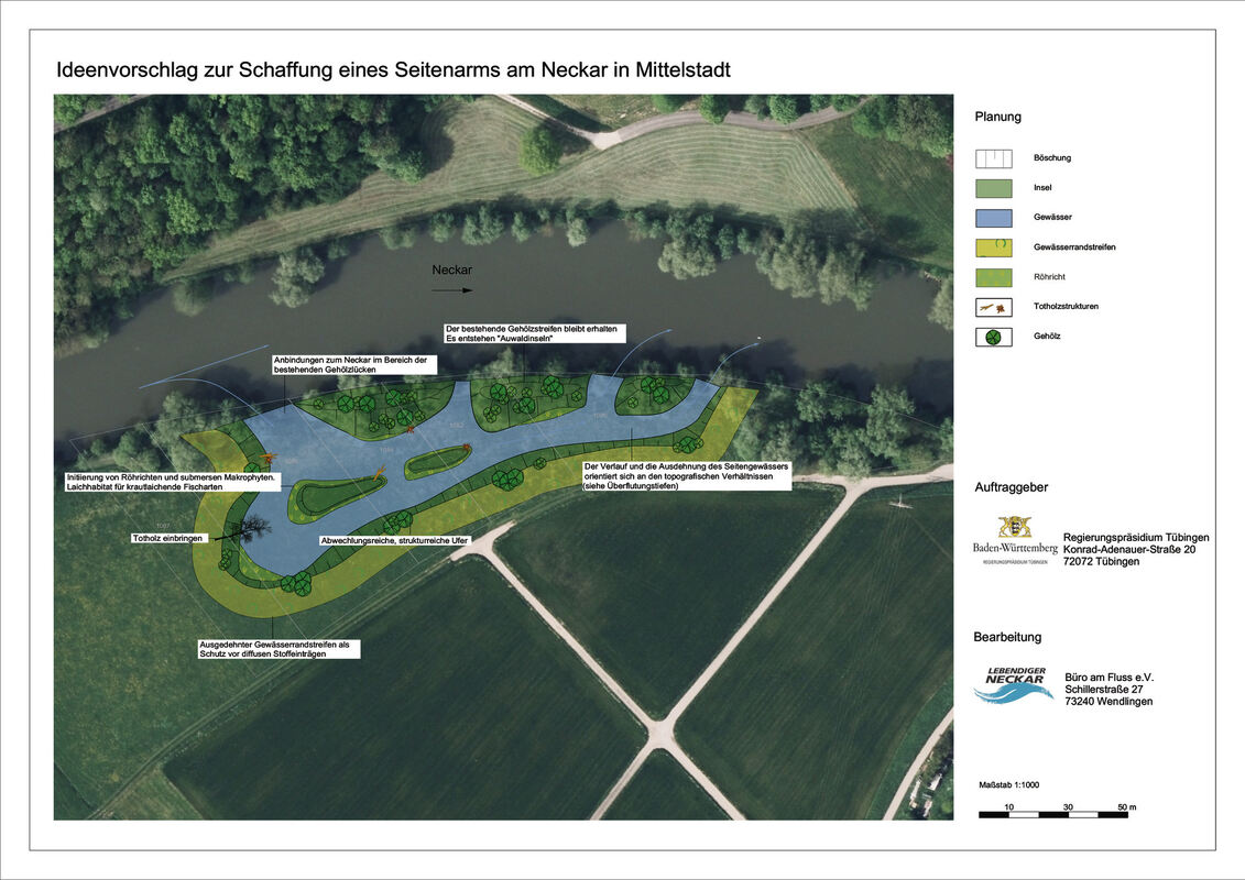 REUTLINGEN-MITTELSTADT. Der Seitenarm soll so ausgestaltet werden, wie der Fluss natürlicherweise einen Seiten- oder Altarm in diesem Bereich ausbilden würde. Der bestehende Auwaldstreifen soll in Form von flächigen Inseln erhalten bleiben und sich zu Auwaldinseln entwickeln. Das Projekt wurde im Bezirksgemeinderat vorgestellt, die Federführung liegt beim Regierungspräsidium in Tübingen.