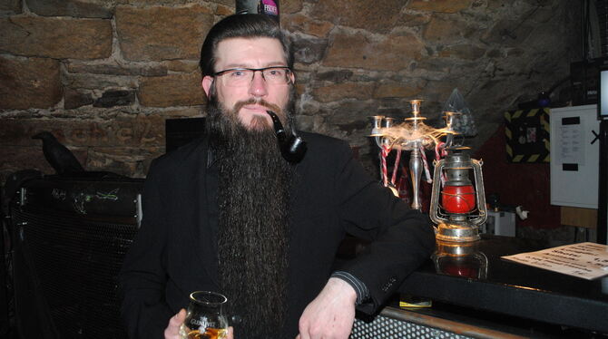 Matthias Müller, der Vorstandsvorsitzende des Vereins Jugend in Aktion, steht hinter der Kellerbar. Er will das Image des Hades aufbessern und neue »Kundschaft« gewinnen. FOTO: JENATSCHKE