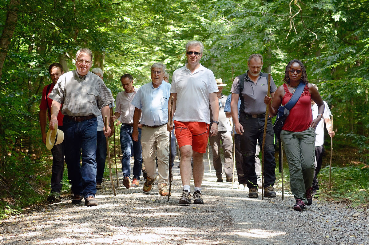 Fanden den Stadtwald gut gepflegt vor: Oberbürgermeister Thomas Keck (links) mit Gemeinderäten und Mitarbeitern der Stadtverwaltung. FOTOS: PIETH