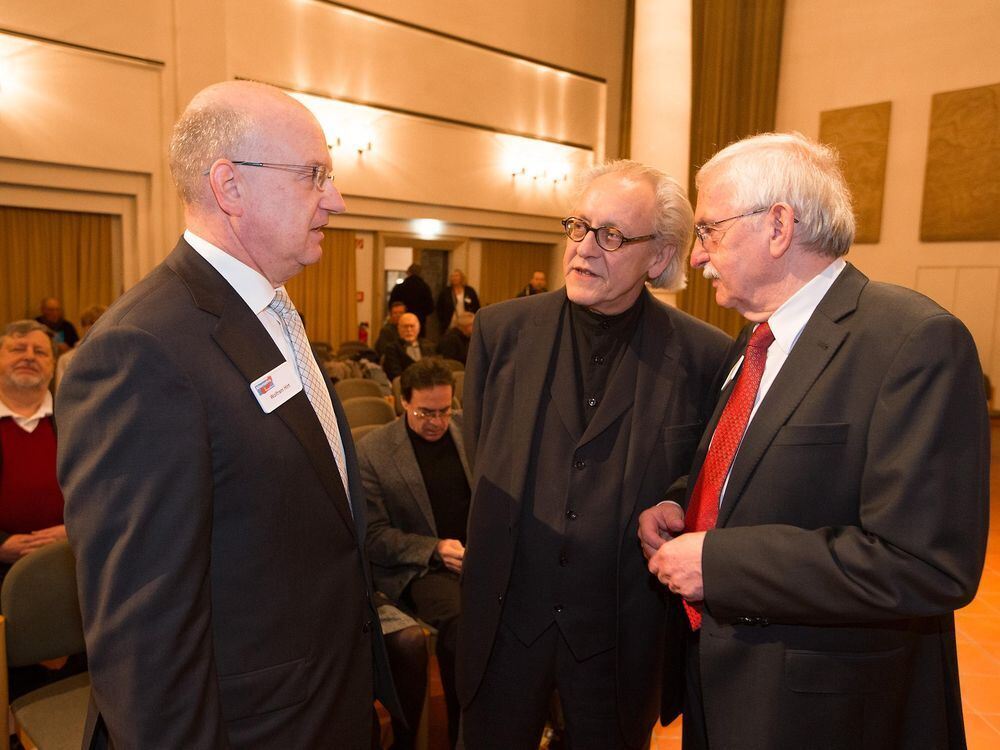 Wolfram Hirt, Sprecher des AfD-Kreisverbands Reutlingen, Martin E. Renner, AfD-Gründungsmitglied, und Jürgen Weber, stellvertretender Sprecher des AfD-Kreisverbands Reutlingen (von links). FOTO: ZAWADIL
